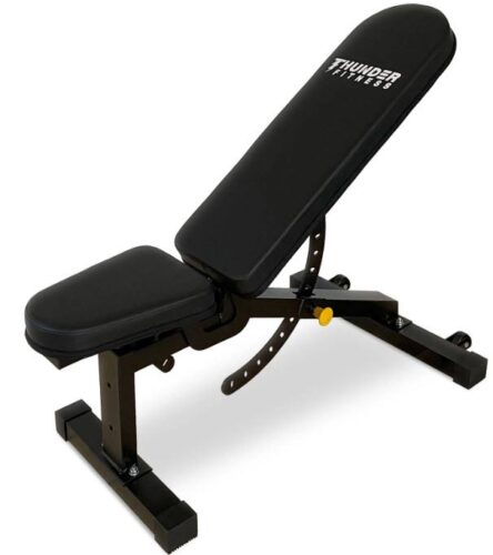 På viktreducering.se rekommenderar vi varmt Thunder Fitness Träningsbänk Flex S1, en mångsidig och stabil träningsbänk som är perfekt för både hemmabruk och mindre företagsgym. Denna bänk erbjuder enastående flexibilitet och anpassningsförmåga för en rad olika övningar.